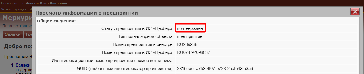 В компоненте Меркурий реализован запрет на оформление ряда операций, осуществляемых в электронном виде в ходе электронной ветеринарной сертификации или в связи с нею, в том числе – оформление ветеринарных сопроводительных документов в случае производства, перемещения или изменения собственника партии продукции, если площадка – отправитель (либо площадка – производитель) имеет статус «Не подтверждён» в реестре компонента Цербер.